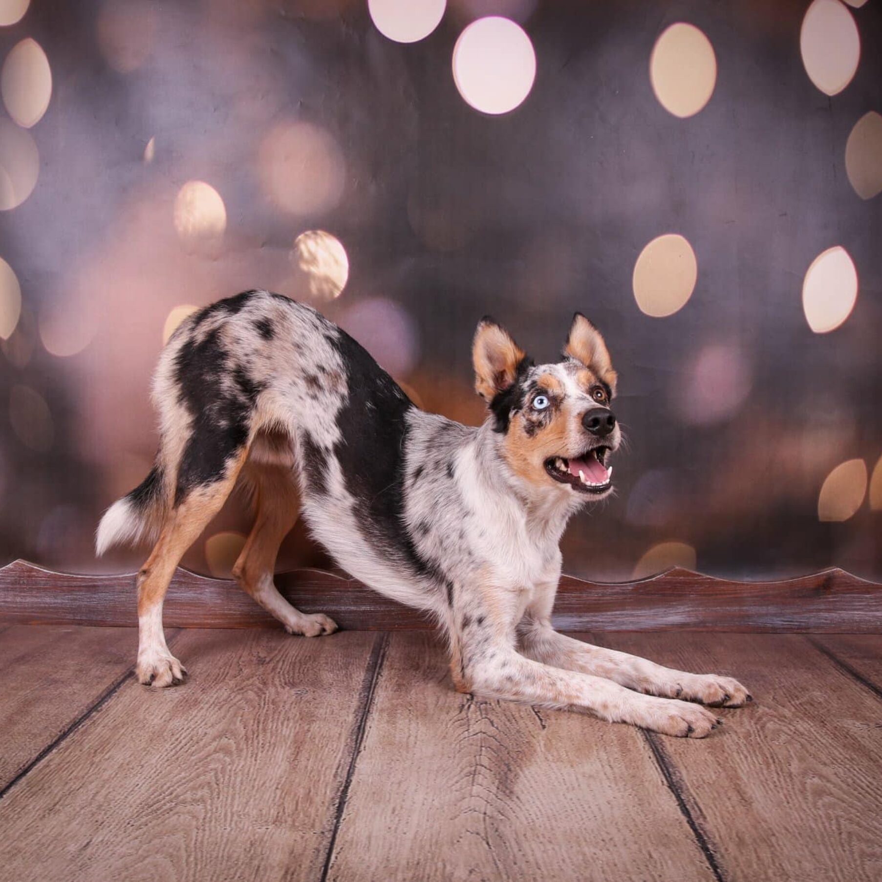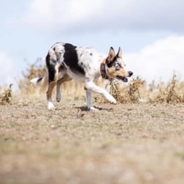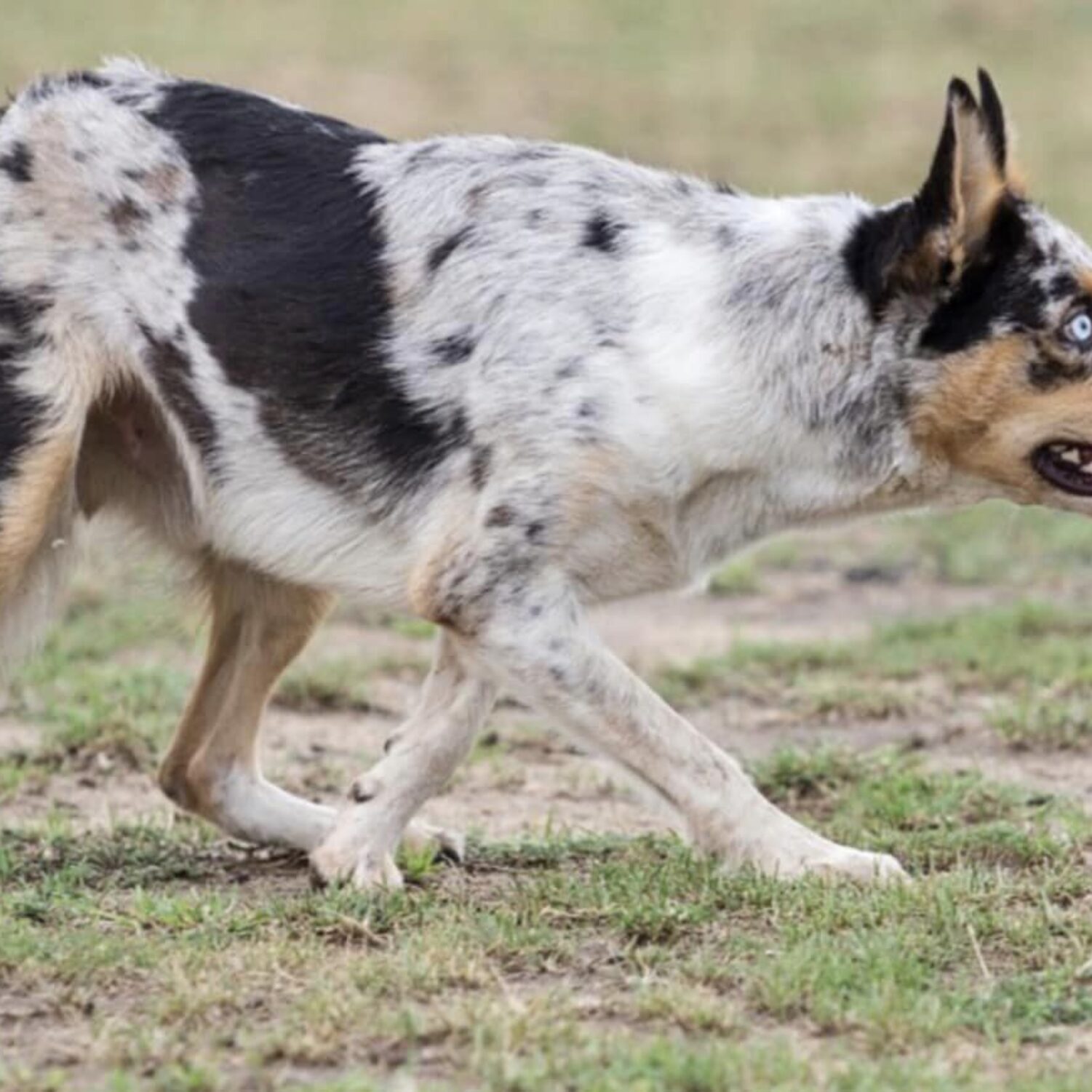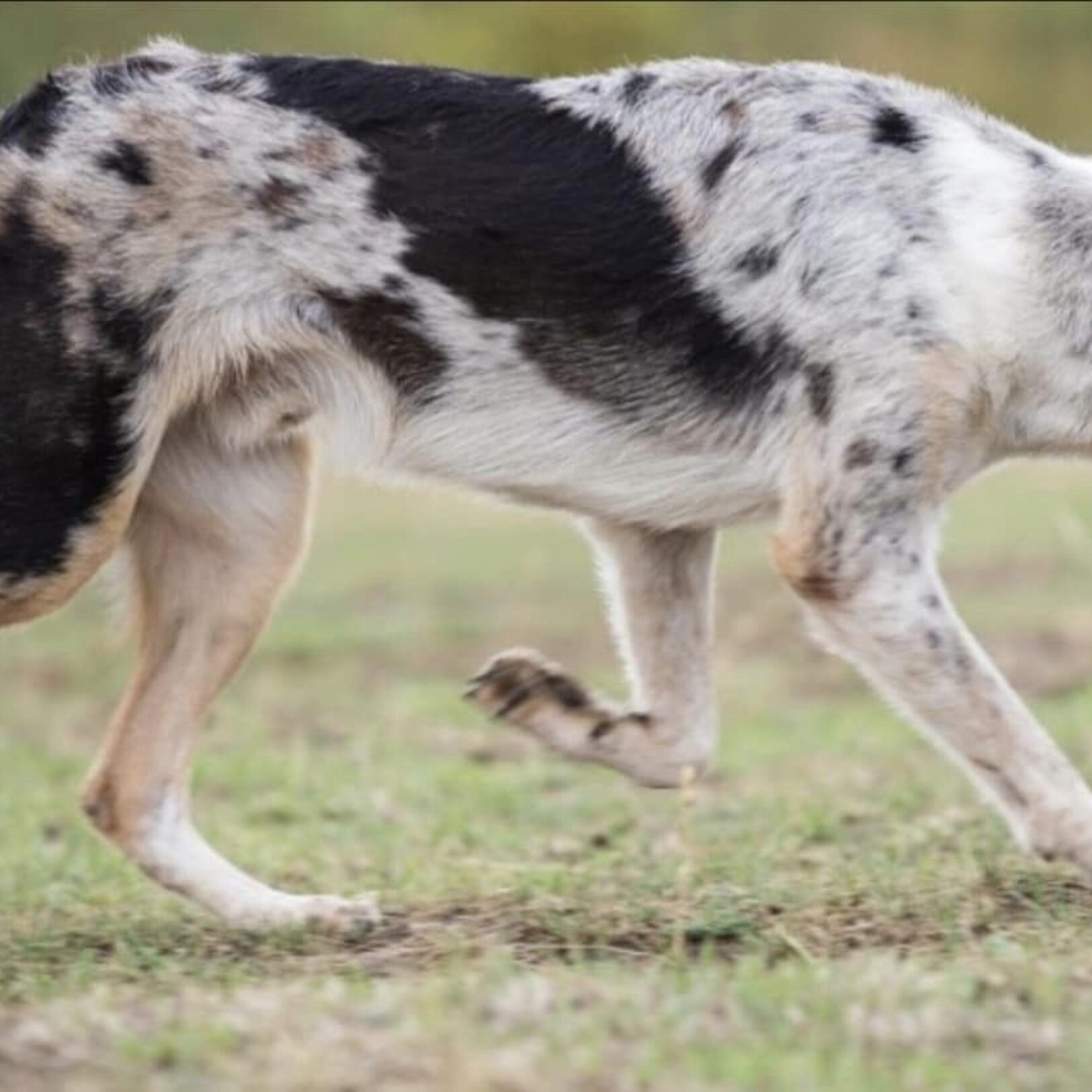 barva: blue merle tweed s pálením a vločkováním, krátkosrstý