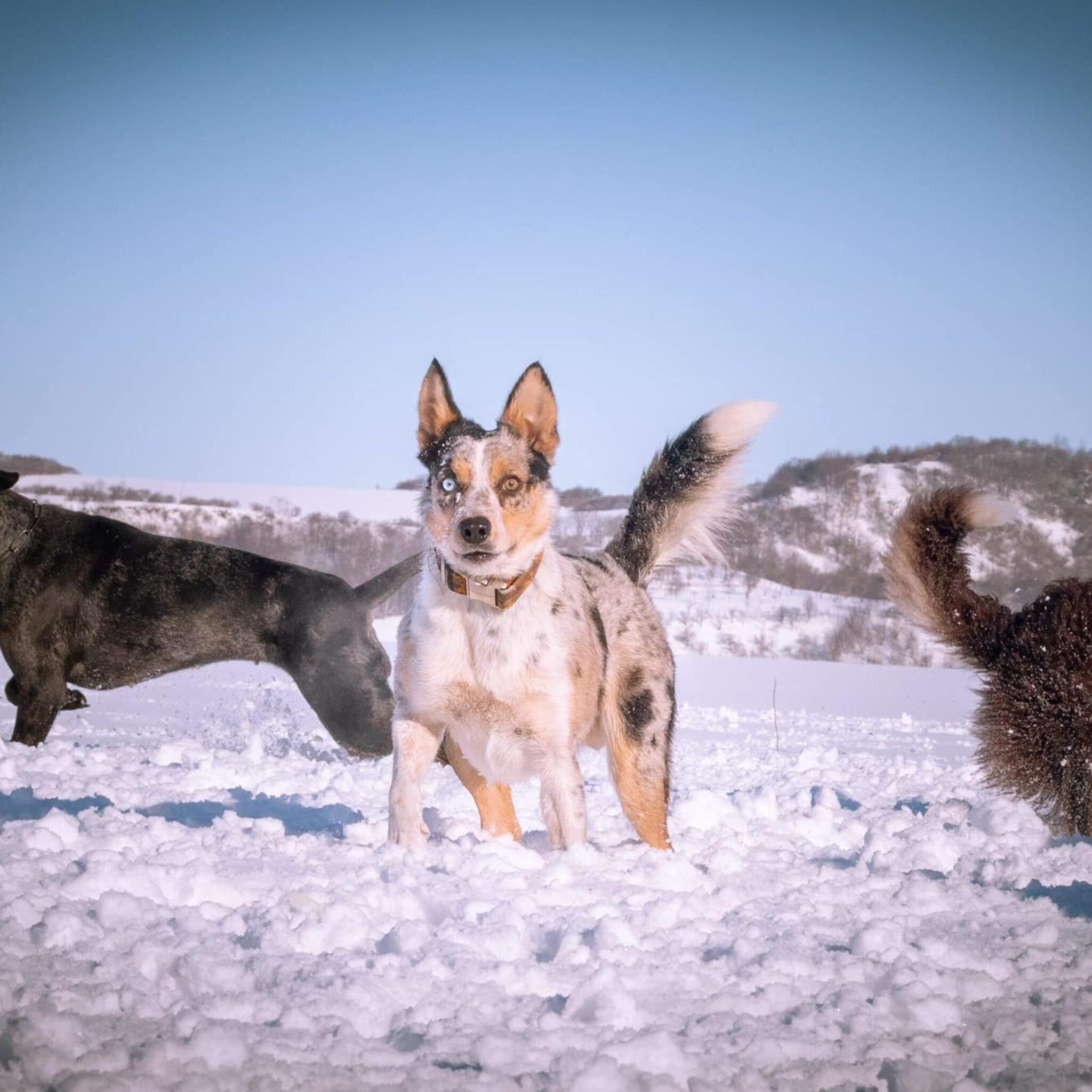 Rádi bychom Vám představili naše modroočko “Ash”. Nynější kápo naší početné smečky, který udává tempo a za každou cenu bývá první. Je temperamentní, nekonfliktní a lehce ovladatelný pes. S velkým potenciálem v práci a s chutí se zavděčit člověku. Často zastává práci farmářského psa, pracuje i s dobytkem. Výborný canisterapeutický pes včetně pravidelné praxe v zařízení s mentálně postiženými klienty. Spolehlivý krycí pes, zvládá i problémové feny. Dobře prověřený v chovu, valná většina potomků vyšetřených s nejlepšími zdravotními výsledky.