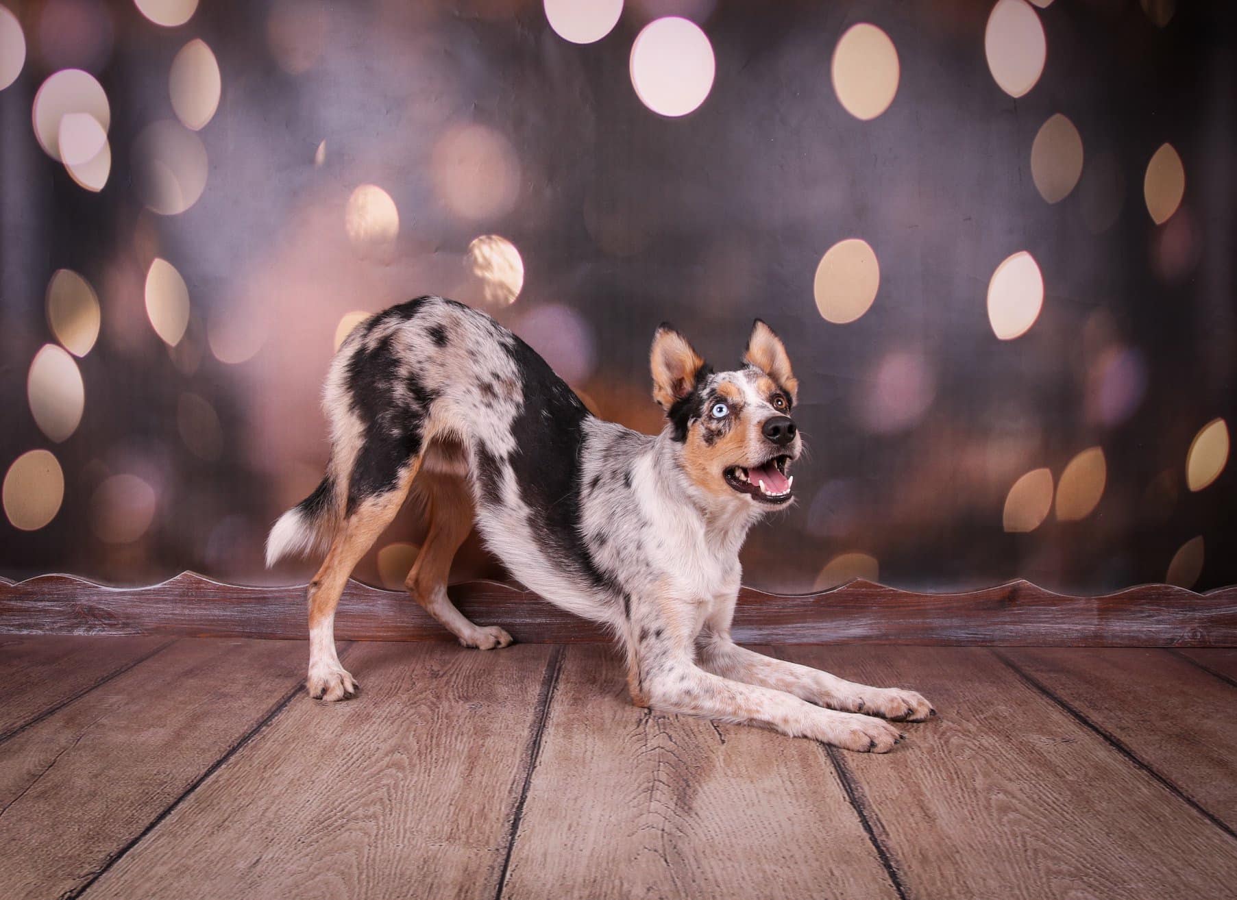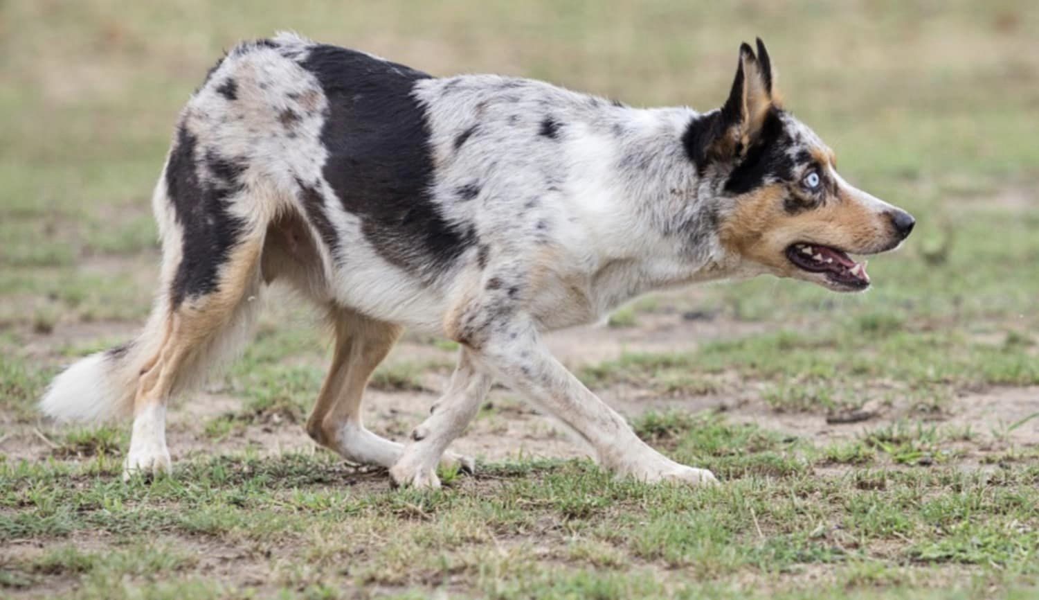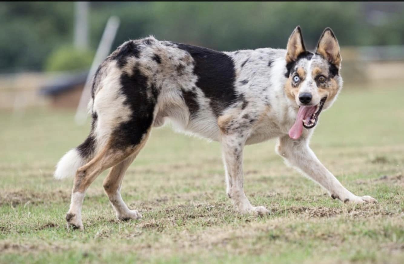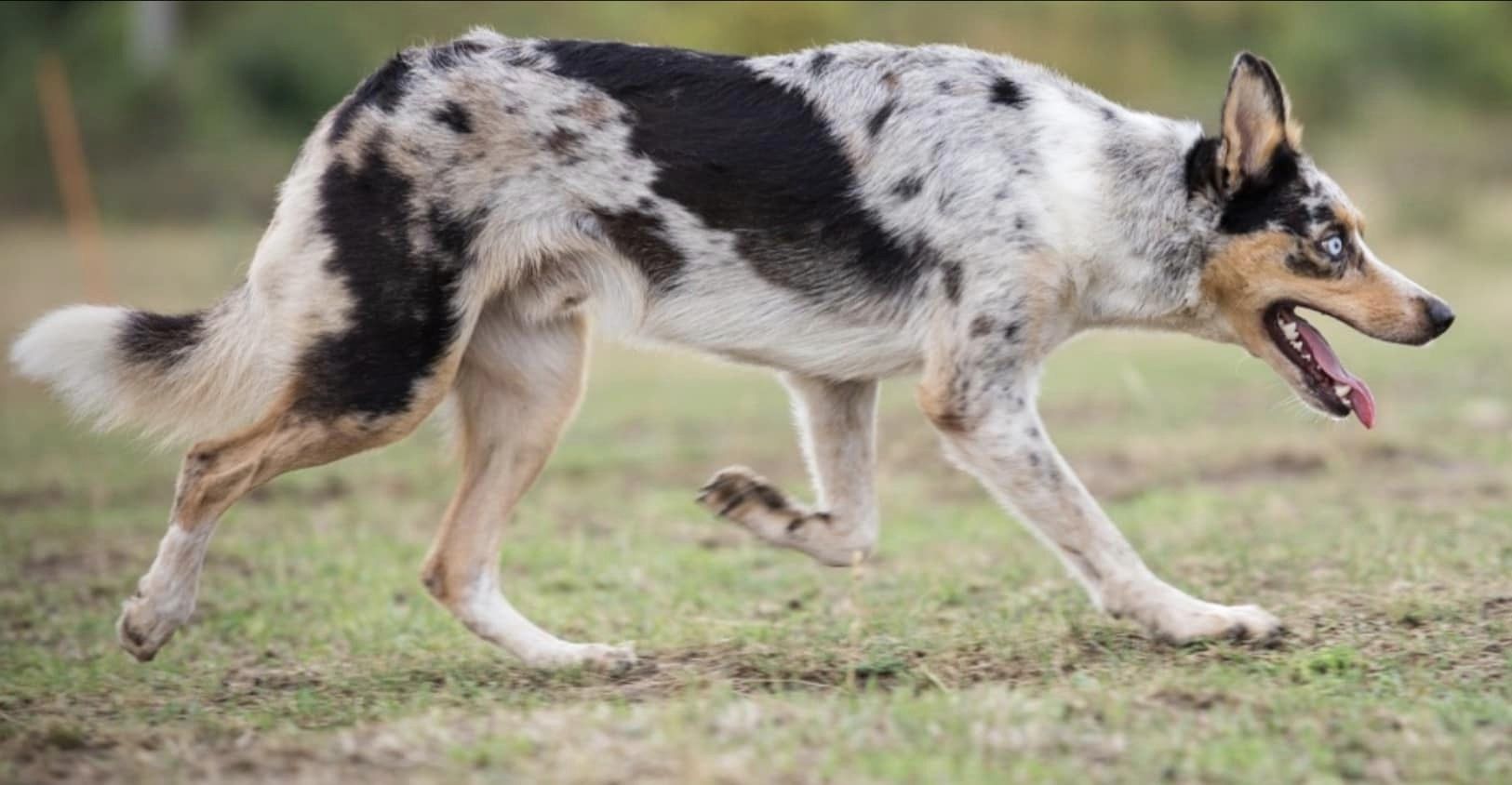 barva: blue merle tweed s pálením a vločkováním, krátkosrstý
