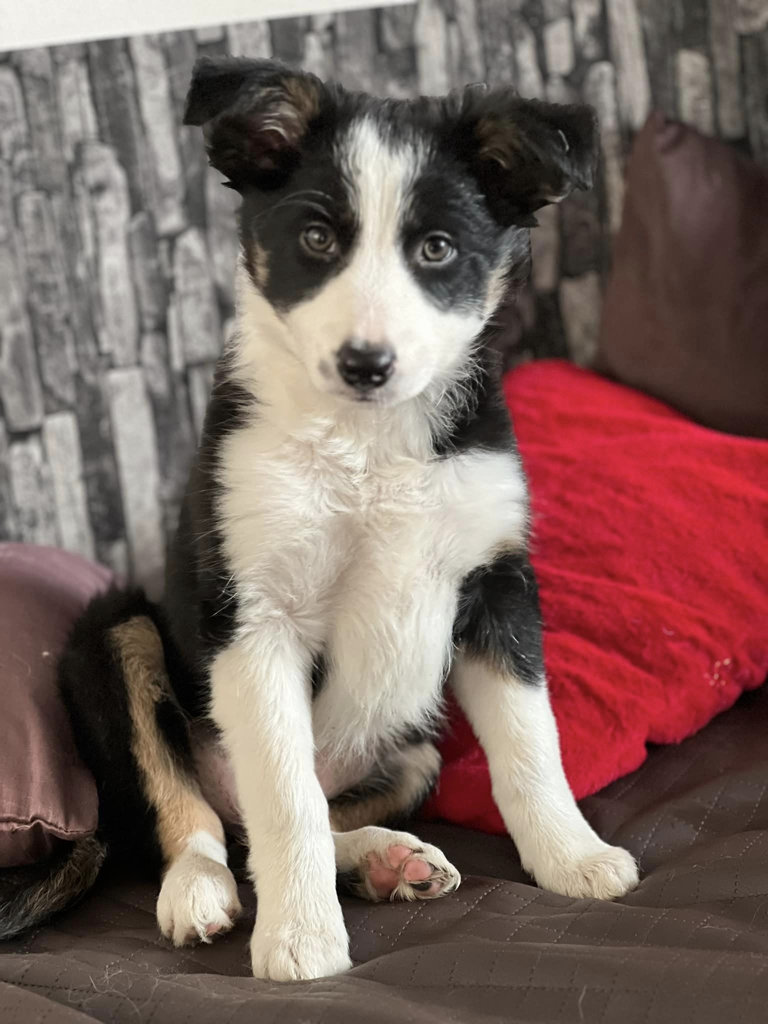 barva: černobílá s pálením, středně dlouhá srst