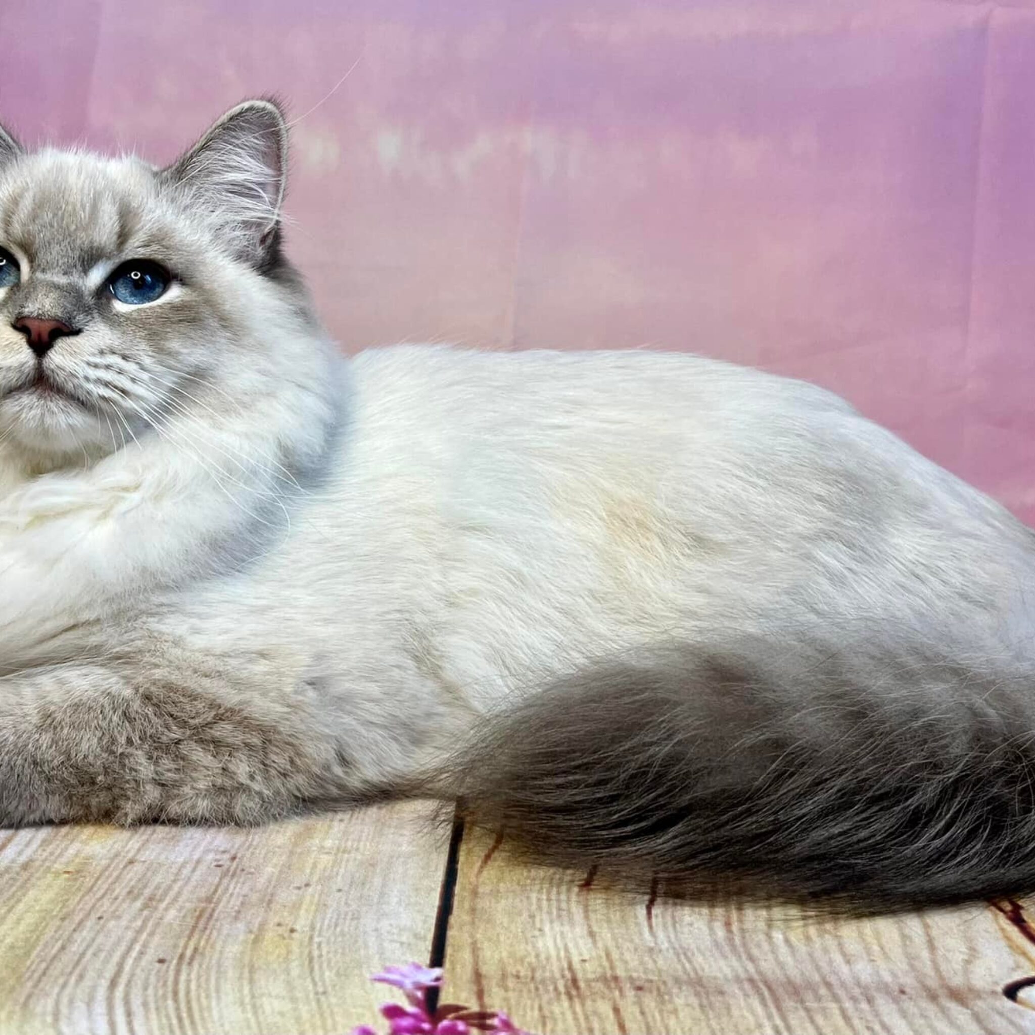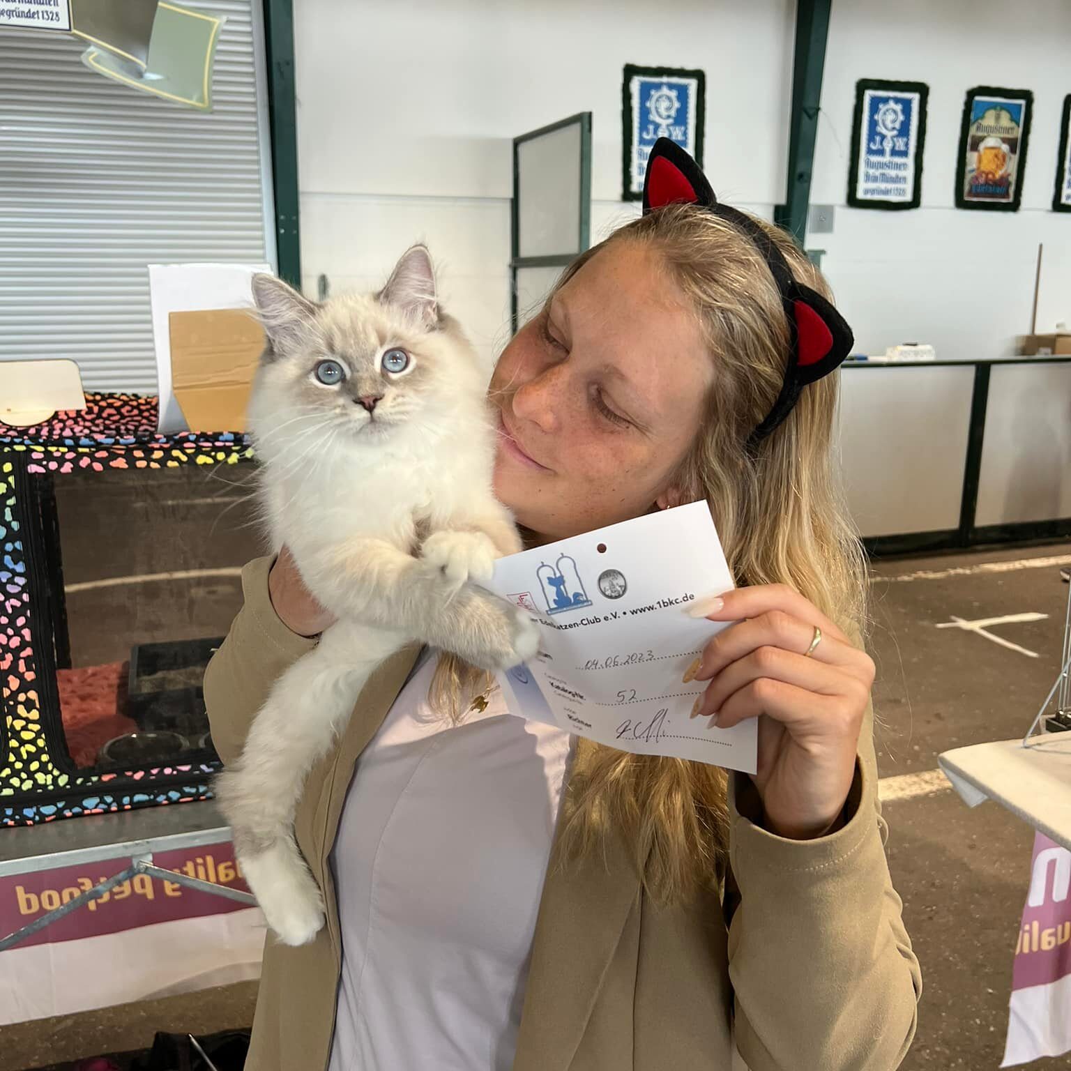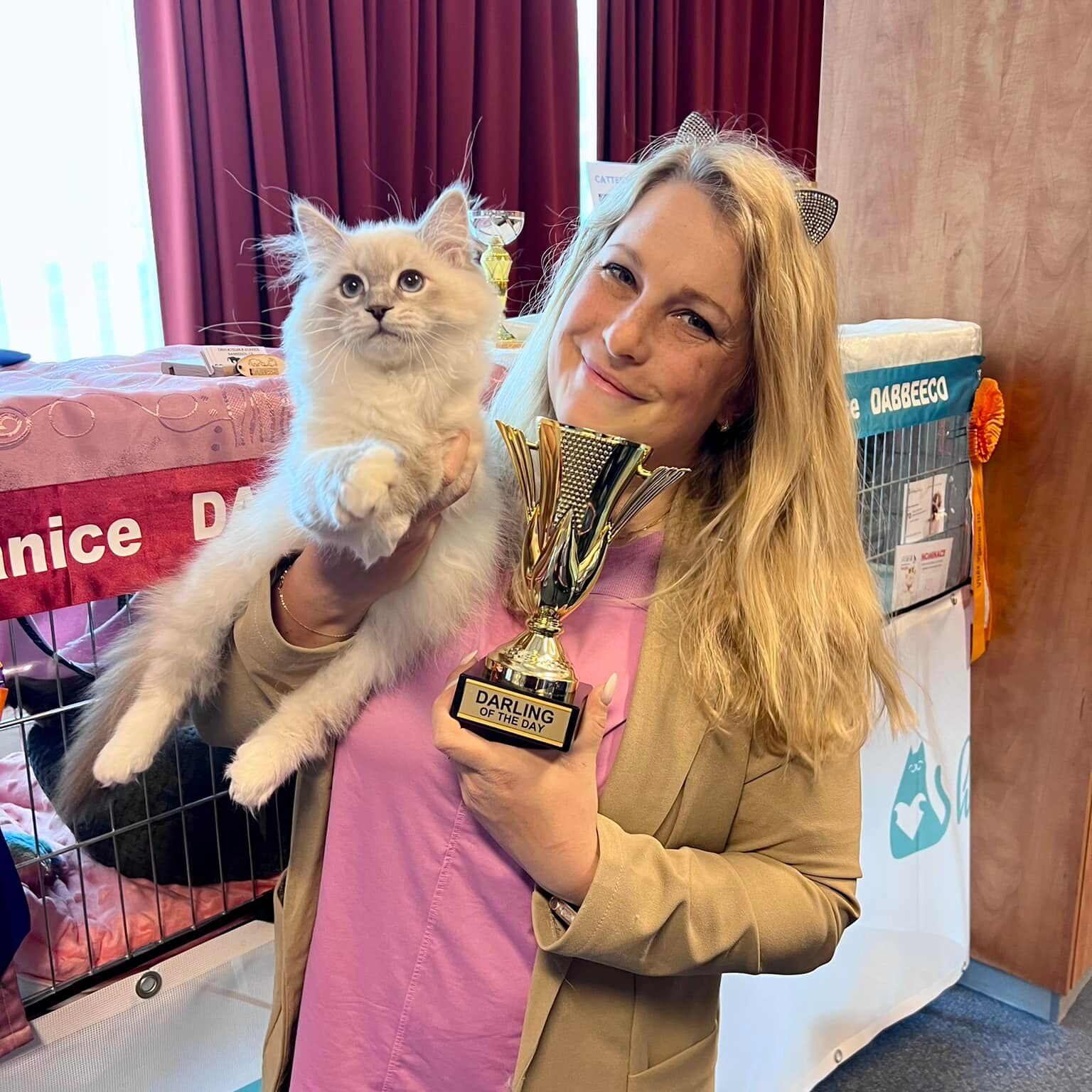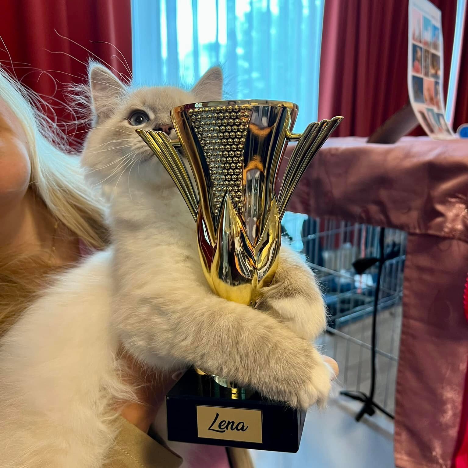 Rádi bychom Vám představili naší královnu nezapomenutelnou “Luninku”. Výjimečná kočička z naší početné smečky, která je nejstarší z našich chovných kočiček. Je to velice klidná a extrémně mazlivá kočička. S velkým potenciálem na felinoterapii a s chutí se zavděčit člověku, včetně pravidelné praxe v zařízení s dětmi, seniory i mentálně postiženými klienty. Na výstavách získala nespočet ocenění a stejně tak splnila podmínky pro 2. nejvyšší titul Grand Inter Champion a po mateřské máme v plánu dojet i Supreme Championa. Dobře prověřená v chovu, valná většina potomků vyšetřených s nejlepšími zdravotními výsledky a povahově vhodnými na felinoterapie. Jeho potomci se neztrácí ani na výstavním poli.