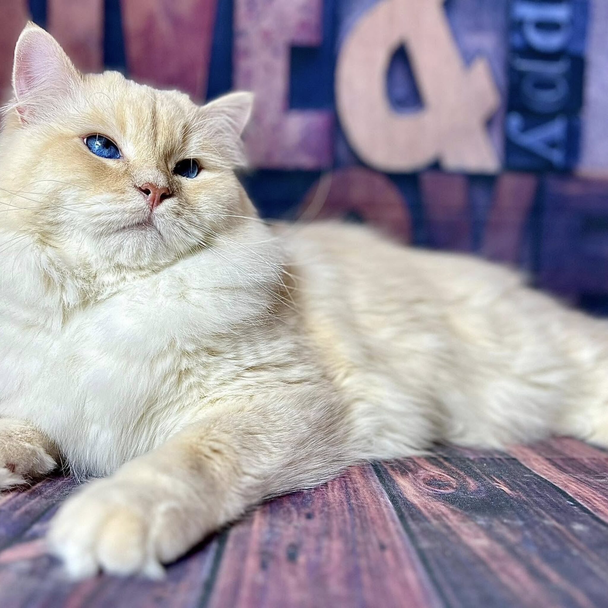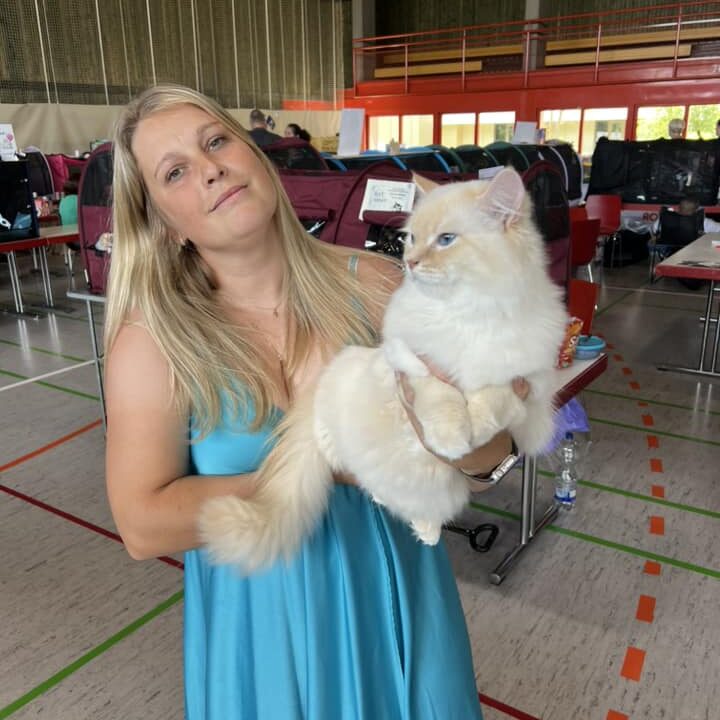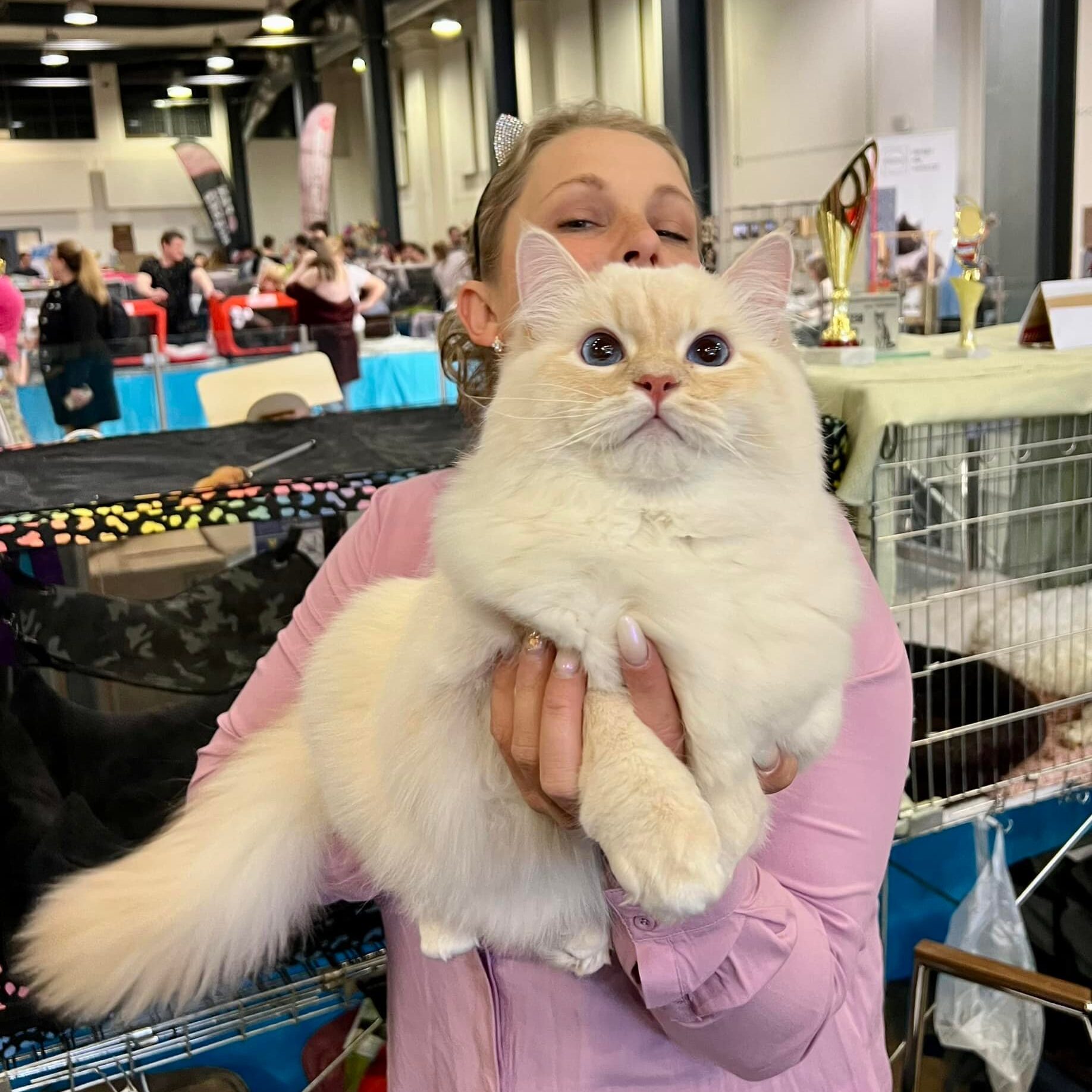 Rádi bychom Vám představili naše modroočko “Orionka”. Nynější kápo naší početné smečky, který udává tempo a za každou cenu musí být slyšet. Je to velice klidný a extrémně mazlivý kocourek. S velkým potenciálem na felinoterapii a s chutí se zavděčit člověku, včetně pravidelné praxe v zařízení s dětmi, seniory i mentálně postiženými klienty. Na výstavách získal mnoho ocenění a stejně tak splnil podmínky i pro nejvyšší titul Supreme Champion. Spolehlivý krycí kocour, zvládá i problémovější kočičky. Dobře prověřený v chovu, valná většina potomků vyšetřených s nejlepšími zdravotními výsledky a povahově vhodnými na felinoterapie. Jeho potomci se neztrácí ani na výstavním poli.