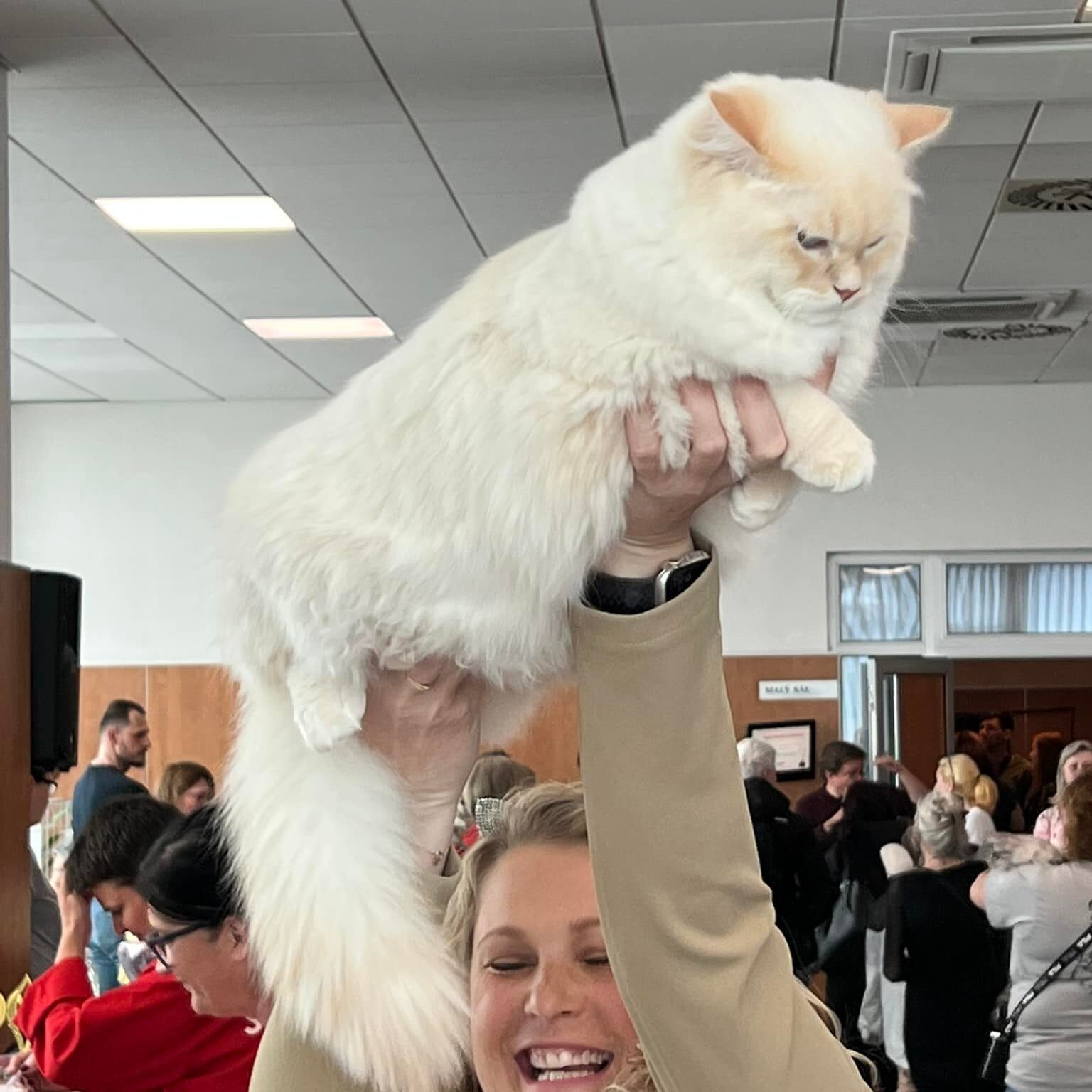 1.4.2023 – Prezenční výstava Praha 4 – Chodov – vítěz plemene NEM, 2. nejhezčí kočka výstavy