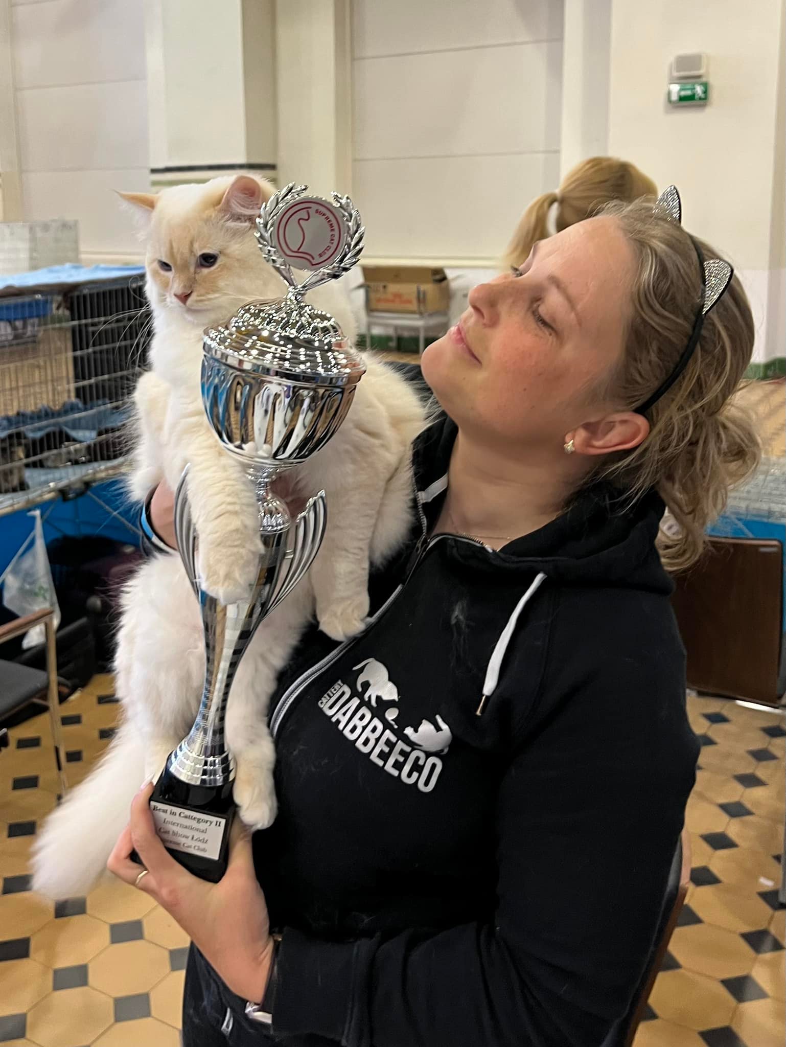 1.4.2023 – Prezenční výstava Praha 4 – Chodov – vítěz plemene NEM, 2. nejhezčí kočka výstavy